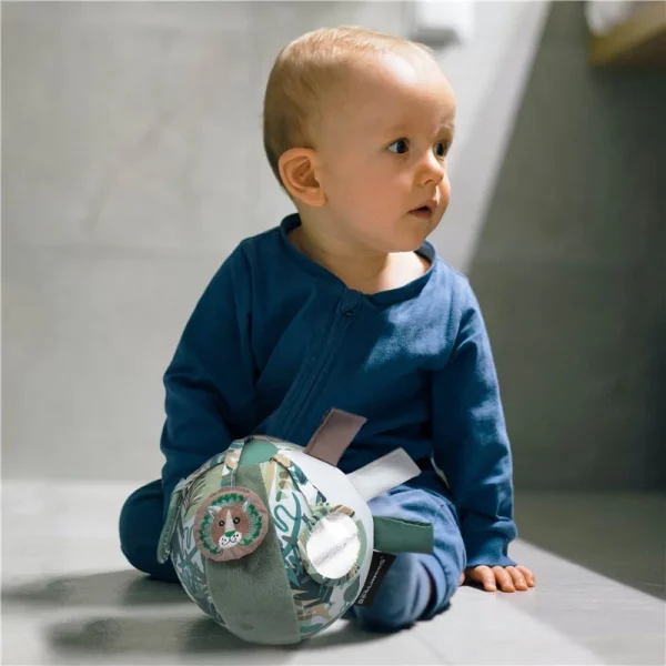 Dans son parc ou sur un tapis d’éveil, bébé pourra s’amuser avec sa balle verte et colorée Jélékros le lion toute douce au son du grelot ! A lancer, mordiller ou secouer, c’est l’éclate assurée ! Ce jouet d’éveil est idéal pour éveiller tous les sens de bébé grâce à son miroir, son papier bruissant, son hochet, son anneau de dentition…