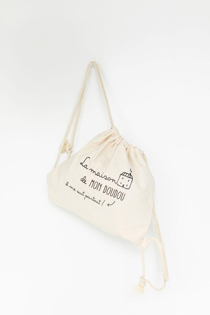 Sac à dos 100 % coton bio 27 cm de large sur 23 cm de haut.